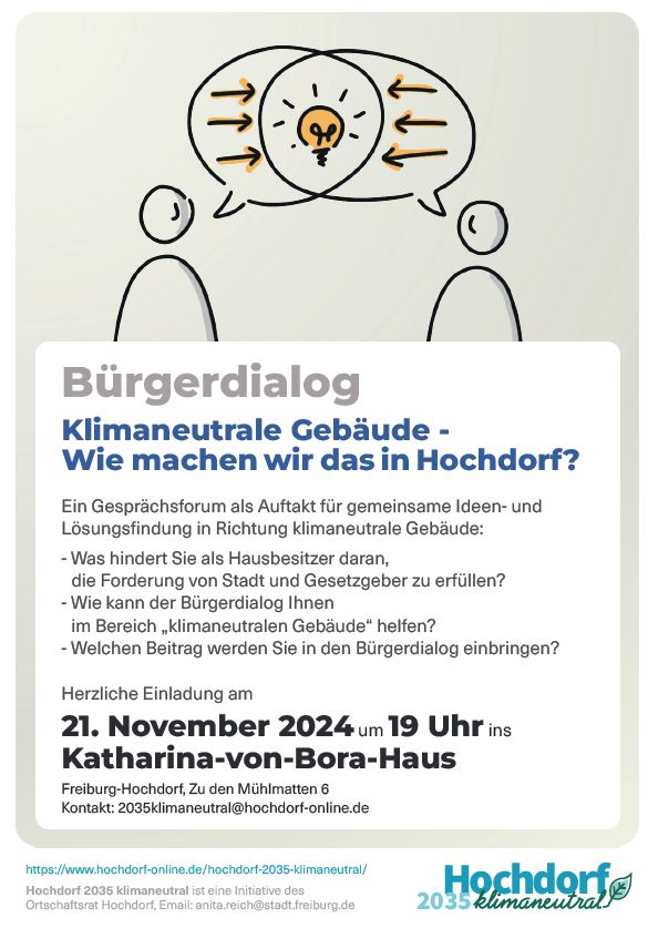 Mit einer Auftaktveranstaltung zum “Bürgerdialog” Mitte November startet die Initiative “Hochdorf 2035 klimaneutral” in die nächste Etappe rund um Themen wie z.B. Gebäudesanierung, Heizungstausch, Fördermöglichkeiten bei solchen Projekten – kurzum die vielen Maßnehmen, die Stadt, Politik und Recht vorsehen, um bei den Gebäuden möglichst bis in gut 10 Jahren...