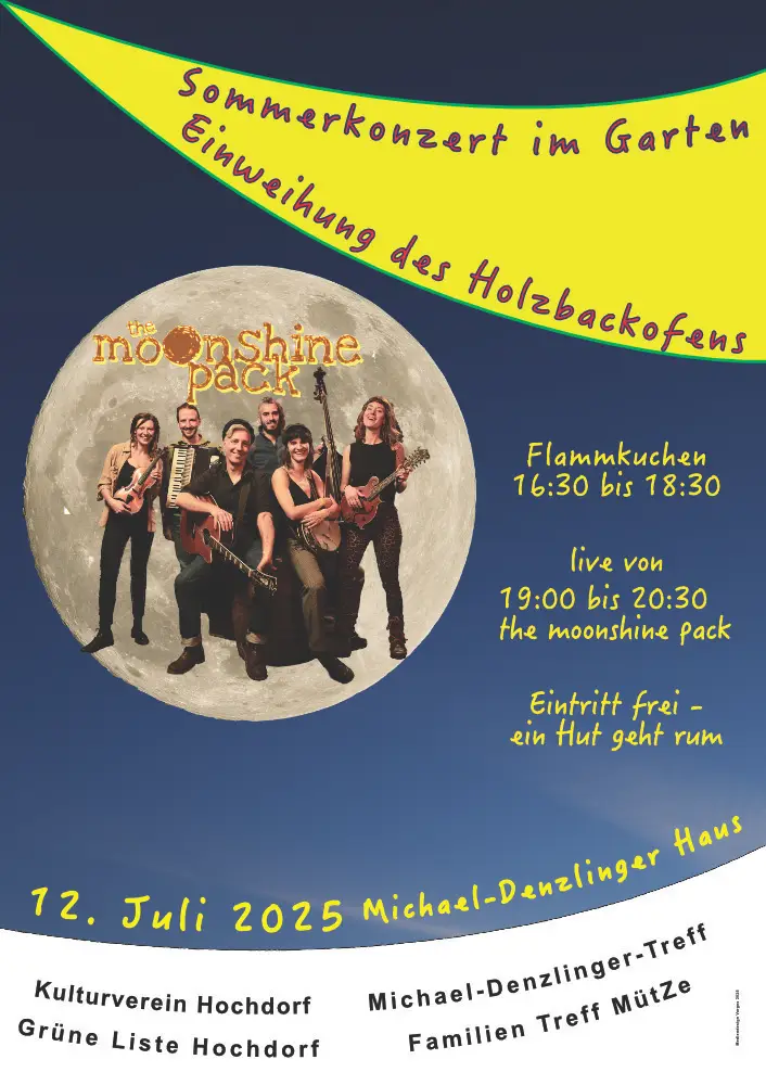 Im schönen Garten des Michael Denzlinger Hauses fand am 12.07.2025 ein ganz besonderes Fest mit zwei wunderbaren Highlights statt. Am Nachmittag auf dem Gelände der neue Holzbackofen eingeweiht – natürlich gab es köstlichen, frisch zubereiteten Flammkuchen. Ab 19:00 Uhr sorgte die Band The Moonshine Pack mit ihrer energiegeladenen Musik für einen mitreißenden Höhepunkt. Performance der Band und...